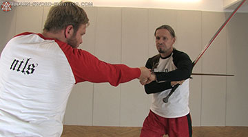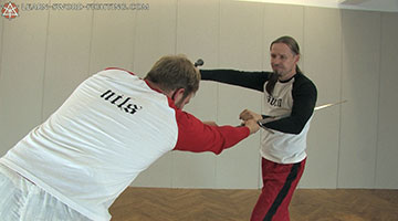 Half-swording (Halbes Schwert / Kurzes Schwert) calls for the fencer to grip his/her longsword with one hand at the handle and the other hand shifted to the blade (or even both hands) to wield it somewhat like a spear, pollaxe, or mace, whether for defence or offence.