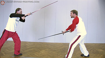 The counter-thrust from the binding parry against the regressive Zornhau.