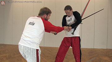 Bei Halbschwerttechniken wird typischerweise mit der Hand die Klinge gegriffen.