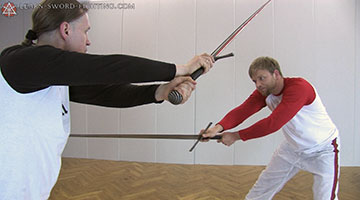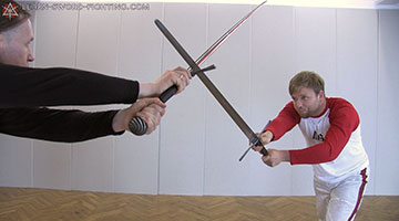 Die Angriffserweiterung Zucken eignet sich für Situationen, in denen dein Angriff (Zornhau oder Unterhau) vom Gegner knapp am Ende deiner Klinge (Ort) versetzt wird.