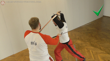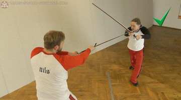 This video shows you how to counter with Twerhau from either side, striking with either long edge or short edge. This interpretation cleverly uses Kron for intercepting your foes weapon and launching your strike.