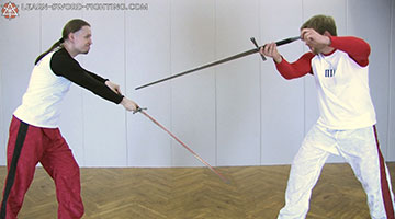 The counter-thrust from the binding parry against the regressive Unterhau.